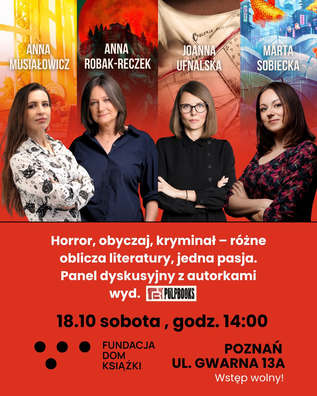 Spotkanie mogę określić jako jedno z tych, o których się nie zapomina. Wszystko to oczywiście zasługa autorek Pulp Books (Marty Sobieckiej – prowadzącej, Anny Robak-Reczek, Joanny ufanalskiej i, mam nadzieję, moja 😈) i naszego dobrego ducha – Sylwii Villy Zimowskiej. Jednak to wydarzenie nie miałoby sensu w tej formie, gdyby nie publiczność. Dzięki, że byliście ❤️